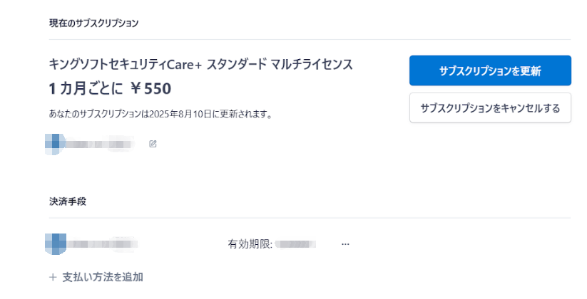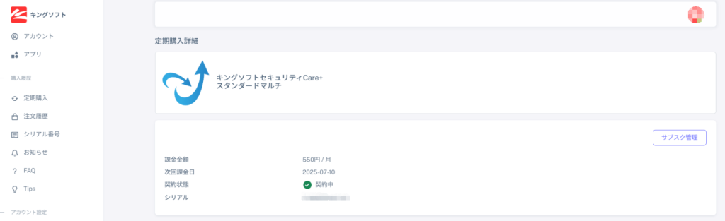 こちらのご案内は、ユーザーセンター経由で購入されたキングソフトセキュリティCare+のサブスクリプションが対象です。