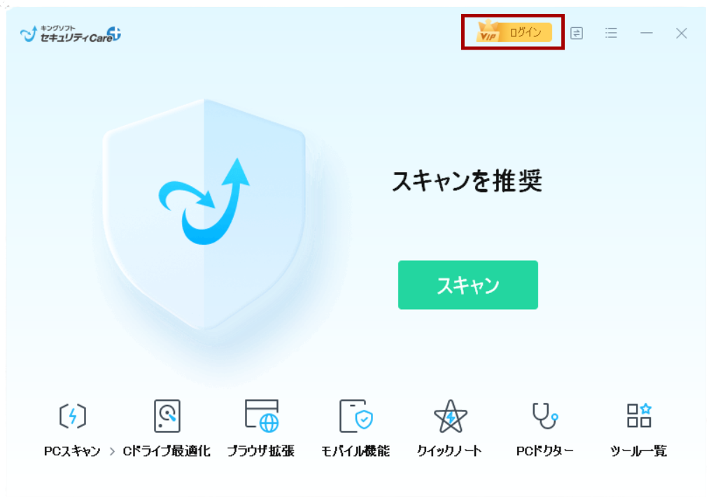 キングソフトセキュリティCare+を起動します。