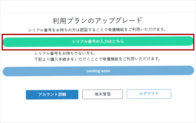 1. 「シリアル番号の入力はこちら」を押します。