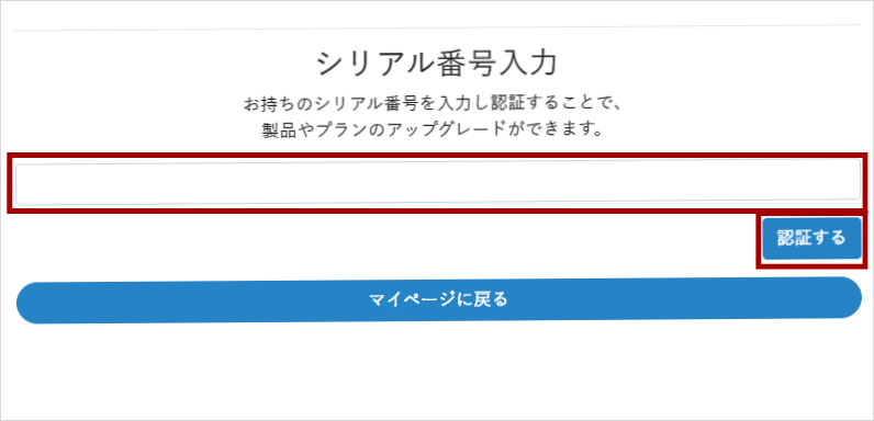 - ログインしましたら、『シリアル番号の入力はこちら』をクリックし、お持ちのシリアル番号を入力します。