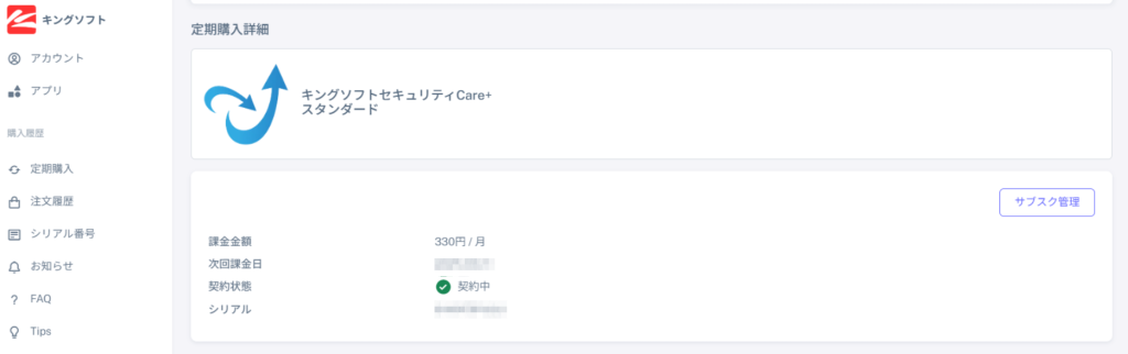 こちらのご案内は、ユーザーセンター経由で購入されたキングソフトセキュリティCare+のサブスクリプションが対象です。