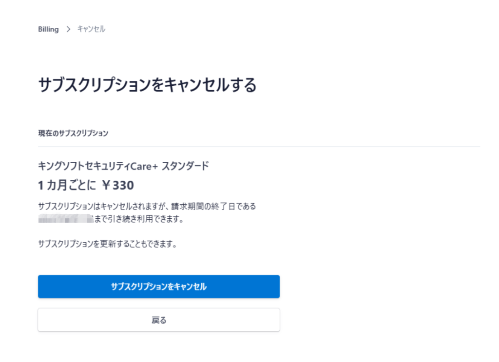 キングソフトセキュリティCare+のサブスクリプションを解約する方法についてご案内します。