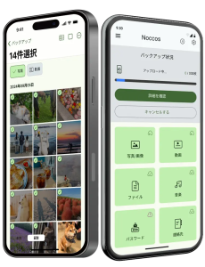Noccos(ノッコス)とは、スマホの写真や動画、音楽、パスワードなどの大切なデータのバックアップを保管できるアプリです。iOS・Androidでご利用できます。