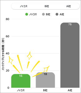 ノッコスは独自技術によって、他社よりも圧倒的に速いスピードでバックアップを完了させることができます